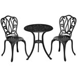 Ajoutez une touche d'élégance à votre jardin ou votre terrasse grâce à cet ensemble 3 pièces au charme rétro. Fabriqué en fonte d'aluminium avec lignes fuselées style fer forgé, l'ensemble bistrot de jardin sera du plus plus bel effet dans votre extérieur ! Sa table ronde avec espace d'insertion de parasol vous permettra de profiter d'un agréable moment en extérieur.