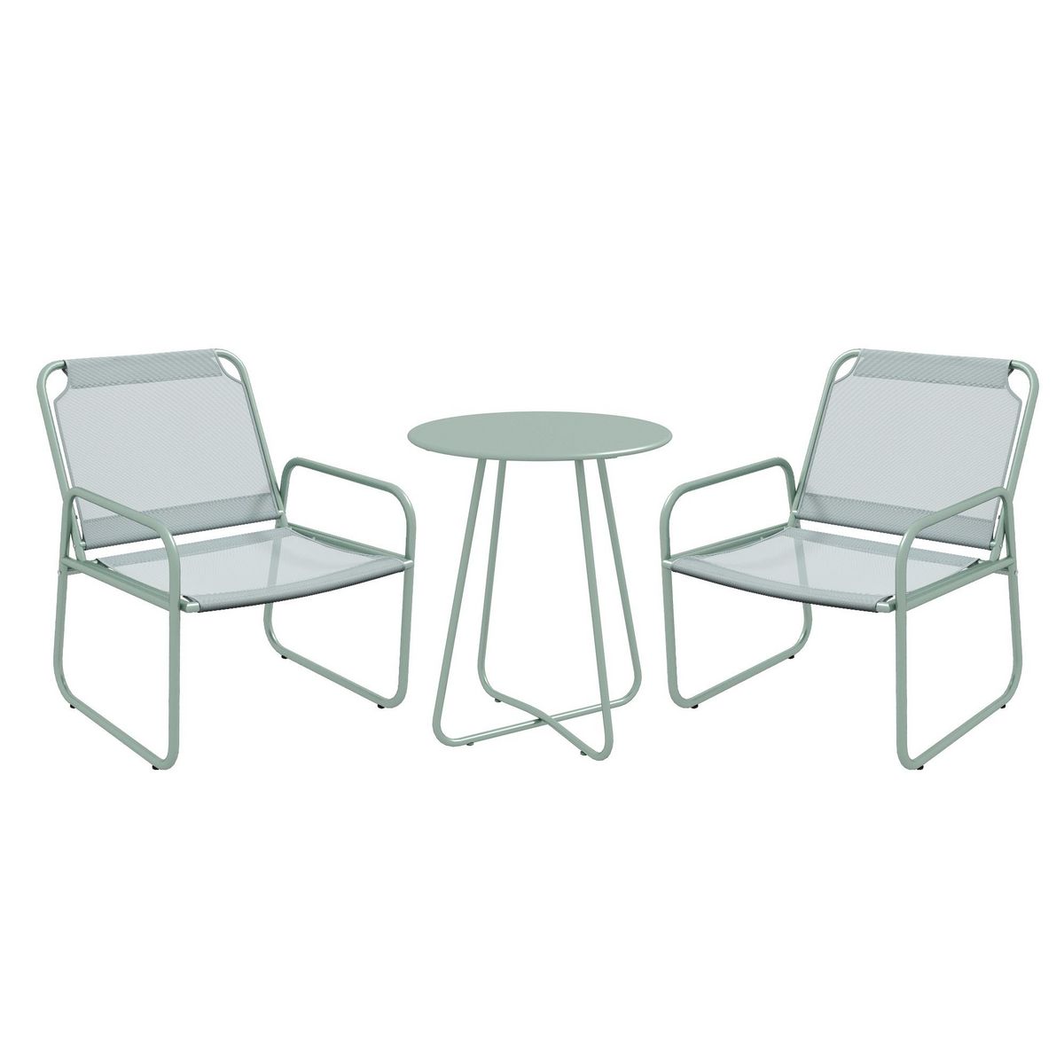 Ensemble salon de jardin 3 pcs 2 fauteuils et table ronde vert