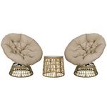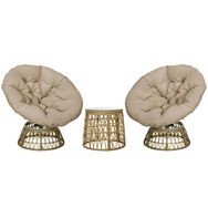 Ensemble salon de jardin 3 pièces - 2 fauteuils papasan, table basse - coussins taupe - résine tressée aspect rotin