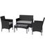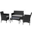 Ensemble salon de jardin 4 personnes 4 pièces résine tressée plateau verre trempé noir gris