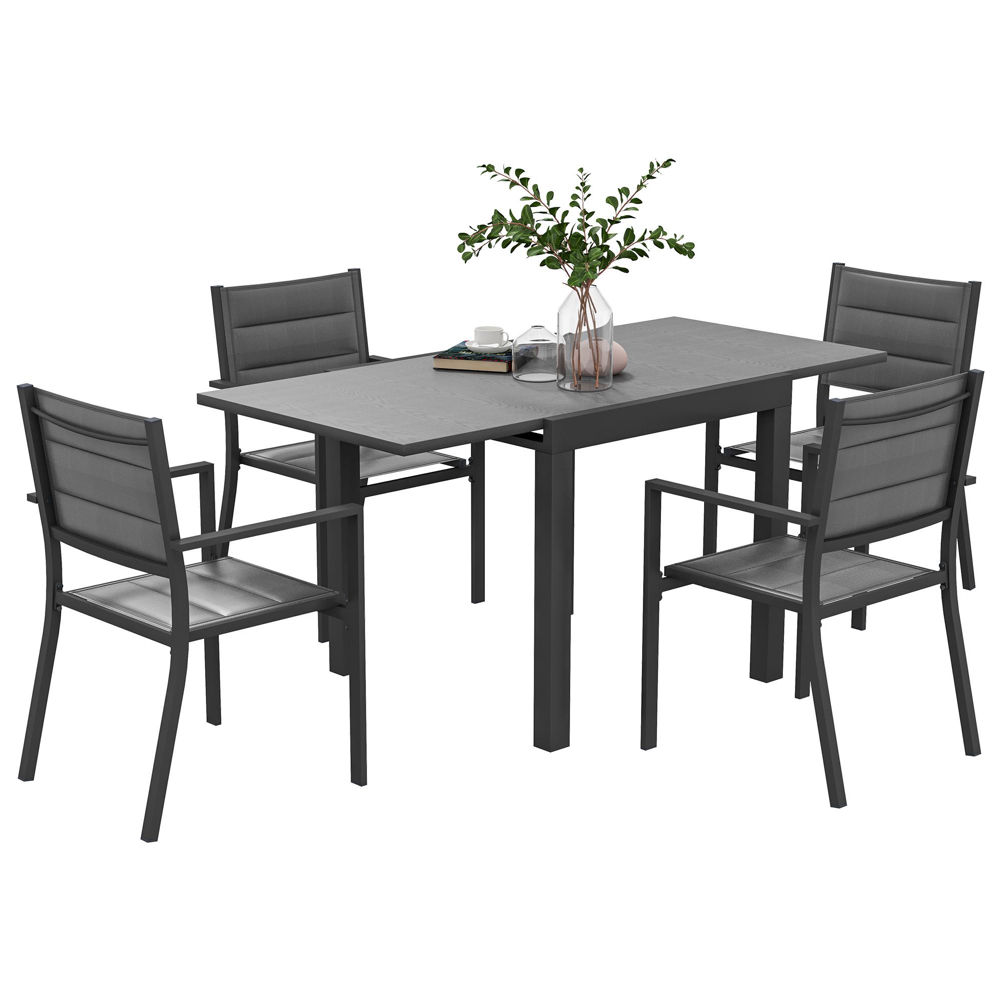 Ensemble salon de jardin 4 personnes 5 pièces table manger extensible anthracite