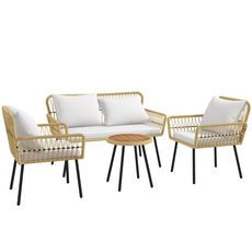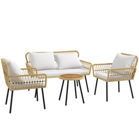 L'ensemble de jardin Outsunny qui se compose de 2 fauteuils, 1 canapé 2 places et d'une table basse ronde avec plateau effet bois, vous permet de créer un espace de convivialité et de partage où vous aurez plaisir à vous retrouver avec vos familles ou amis.Caractéristiques :- Salon de jardin 4 pièce
