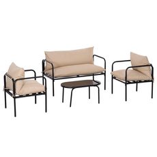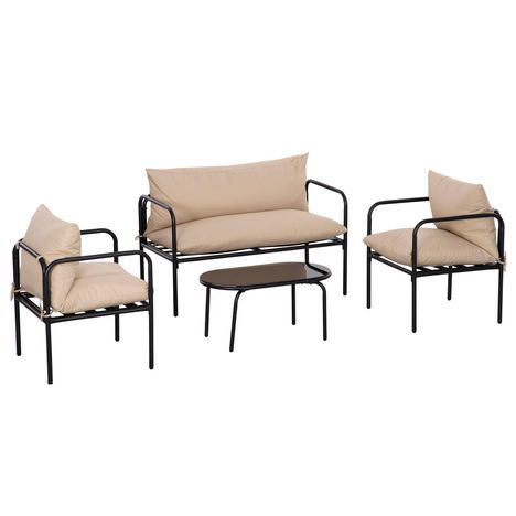 Ensemble salon de jardin 4 places 4 pièces avec coussins beige