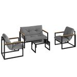 Ensemble salon de jardin 4 places 4 pièces coussins gris acier époxy noir plastique effet bois