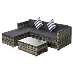 Ensemble salon de jardin 4 places 5 pièces coussins zippés déhoussables polyester résine tressée gris