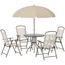 - Ensemble bistro complet composé de 4 chaises pliables, d'une table ronde et d'un parasol