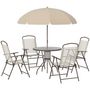 Ensemble salon de jardin 6 pcs - table ronde + 4 chaises pliables + parasol - acier époxy café textilène polyester beige
