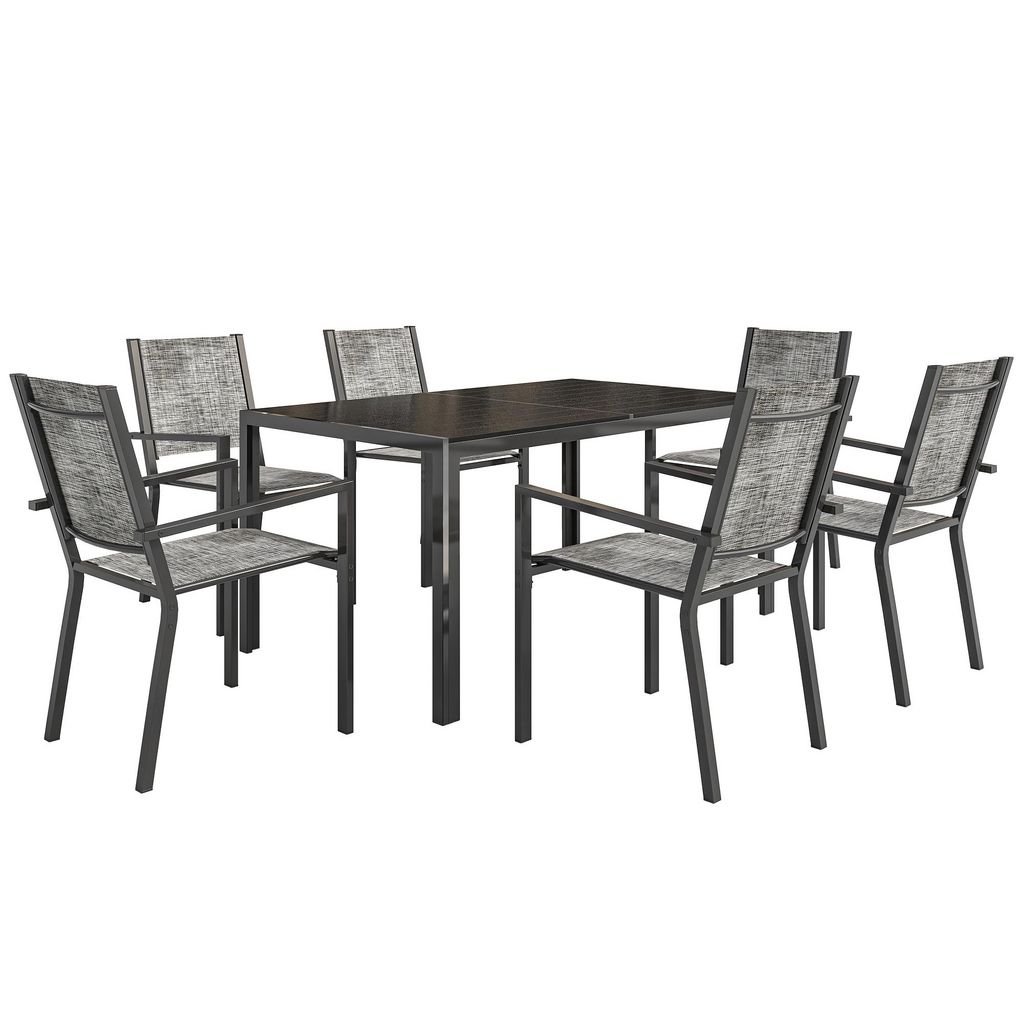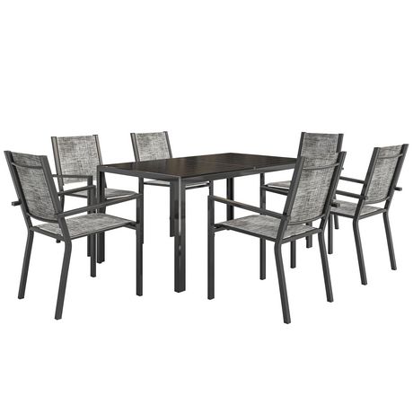 - L'ensemble de table de jardin extérieure avec chaises sept pièces comprend une table rectangulaire et six chaises
