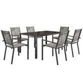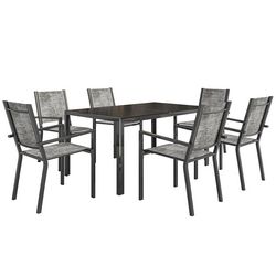 Rehaussez votre jardin avec l'ensemble de table et chaises de jardin extérieures Outsunny : table élégante de 150 cm en composite bois-plastique et six chaises empilables. Idéal pour barbecues ou repas tranquilles, ce salon de jardin offre style, fonctionnalité et confort avec ses chaises en textilène. Parfait pour tous espaces extérieurs !