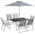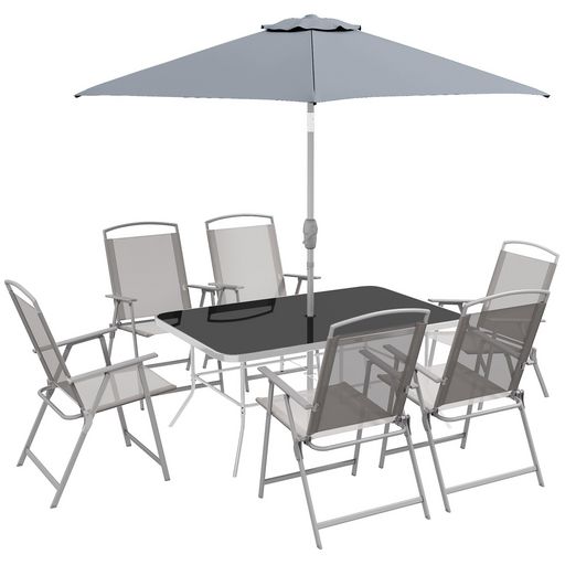 Ensemble salon de jardin 6 places 8 pièces - parasol, table, 6 chaises pliantes - métal époxy textilène polyester gris