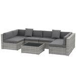 Caractéristiques :- Ensemble salon de jardin complet 6 pers. doté d'un total de 7 pièces : 4 fauteuils, 2 éléments fauteuil d'angle, table basse- Design contemporain style cosy mélant élégance et sobriété- Salon de jardin d'une grande modularité, 4 dispositions au choix- S'intègre parfaitement à tou