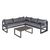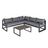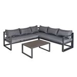 Ensemble salon de jardin d'angle design contemporain style yachting 5 places coussins table basse inclus banquette 3 places réglable alu. gris