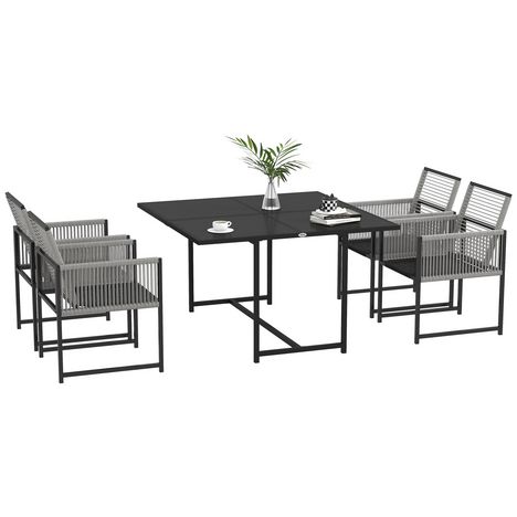 Ensemble salon de jardin design Acapulco encastrable 4 places 5 pièces noir gris