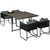 Ensemble salon de jardin encastrable 4 personnes 5 pièces - coussins déhoussables - métal résine filaire noir gris