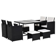 Ensemble salon de jardin encastrable 8 personnes 9 pièces résine tressée 4 fils imitation rotin noir coussins déhoussables crème