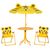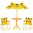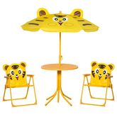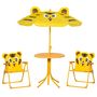 Ensemble salon de jardin enfant 4 pcs design tigre - table ronde + 2 chaises pliables + parasol - métal époxy oxford jaune