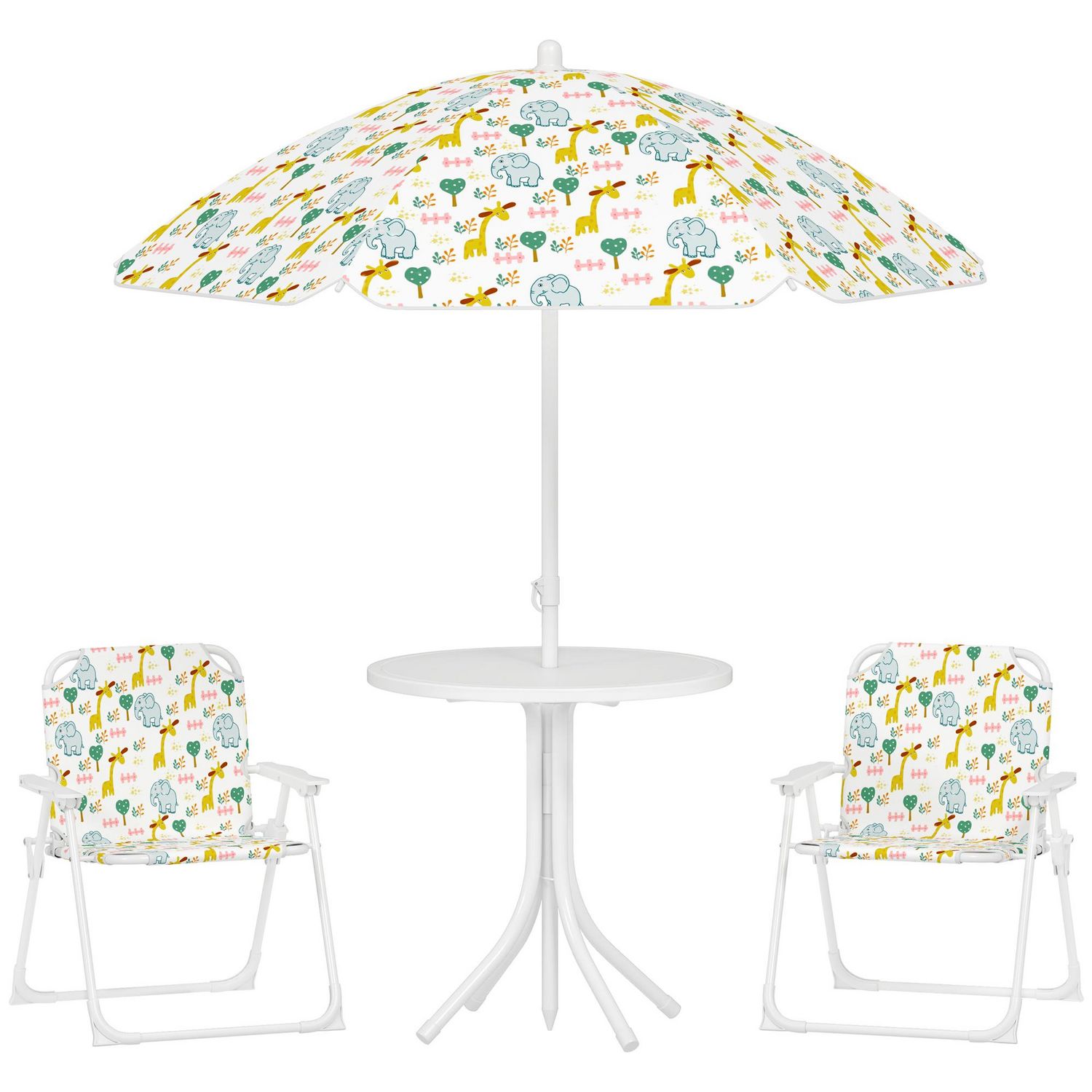 Ensemble salon de jardin enfant pliable 2 places 4 pièces motif vie de la savane blanc