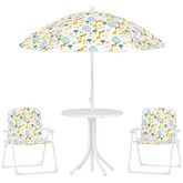 Transformez votre jardin avec l'ensemble salon de jardin extérieur pour enfant AIYAPLAY, comprenant table et chaises pliantes à motifs vie de la savane. Inclut un parasol ajustable pour l'ombre. Convient aux 2-5 ans, se plie pour un rangement facile.