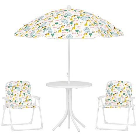 - Ensemble salon de jardin pour enfants de 4 pièces, inclut des chaises, une table et un parasol