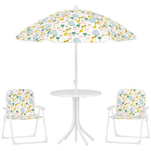 Transformez votre jardin avec l'ensemble salon de jardin extérieur pour enfant AIYAPLAY, comprenant table et chaises pliantes à motifs vie de la savane. Inclut un parasol ajustable pour l'ombre. Convient aux 2-5 ans, se plie pour un rangement facile.Caractéristiques :- Ensemble salon de jardin pour