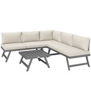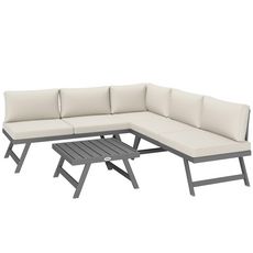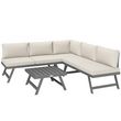Ensemble salon de jardin modulable 5 personnes 4 pièces design alu gris coussins beige