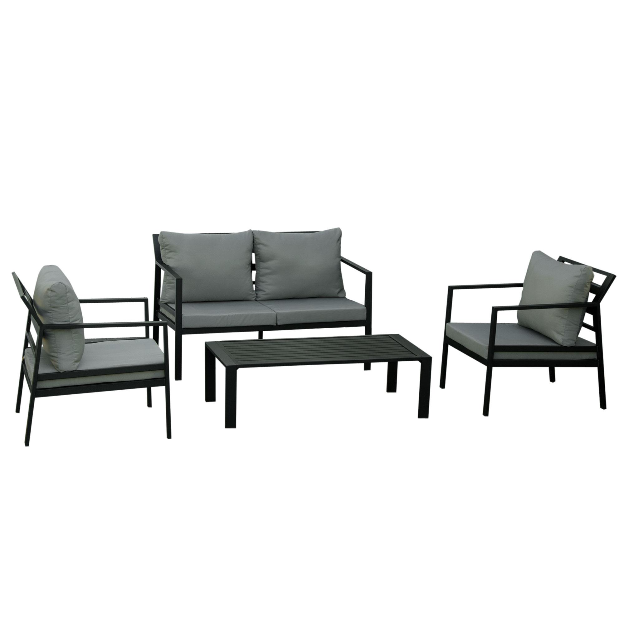 Ensemble salon de jardin style yachting design contemporain 4 places 4 pièces avec coussins déhoussables polyester alu. gris