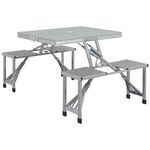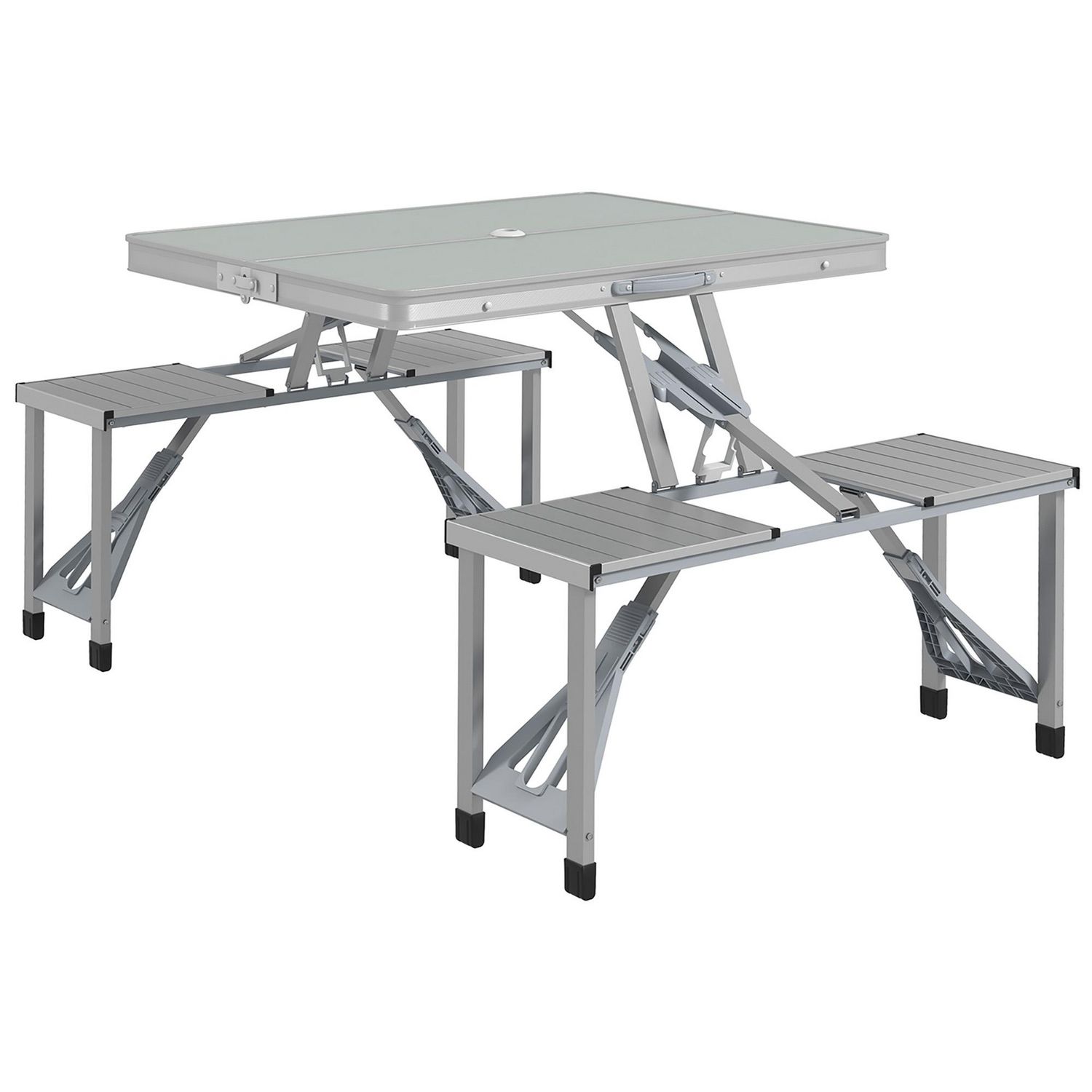 En savoir +Vous avez besoin d'une table et de chaises pratiques à emporter en plein air ? Voici cette table de camping avec 4 sièges intégrés d'Outsunny, dont la structure ressemble à celle d'une valise pliante. Elle est légère et très facile à transporter, idéale pour le camping, la plage, le pique-nique, etc. Fabriquée en aluminium, l'ensemble est léger et très stable.