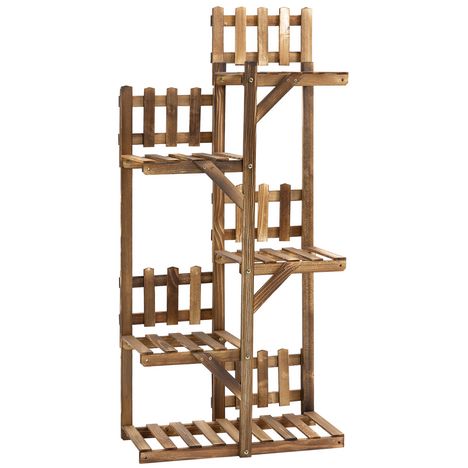 En savoir +Cette superbe étagère à fleurs équipée de 5 tablettes multi-niveaux en bois de sapin traité par carbonisation ornées de petites barrières vous permettra de mettre en valeur vos fleurs et de décorer votre balcon, terrasse, jardin ou encore véranda.