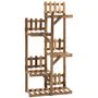 Étagère à fleurs en bois - porte plante bois 5 tablettes ornement petites barrières - dim. 60L x 30l x 130H cm - bois de sapin traité carbonisation