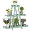 Étagère à fleurs pyramidale en bois - porte plante bois 3 étagères - dim. 76L x 26l x 76H cm - sapin vert d'eau