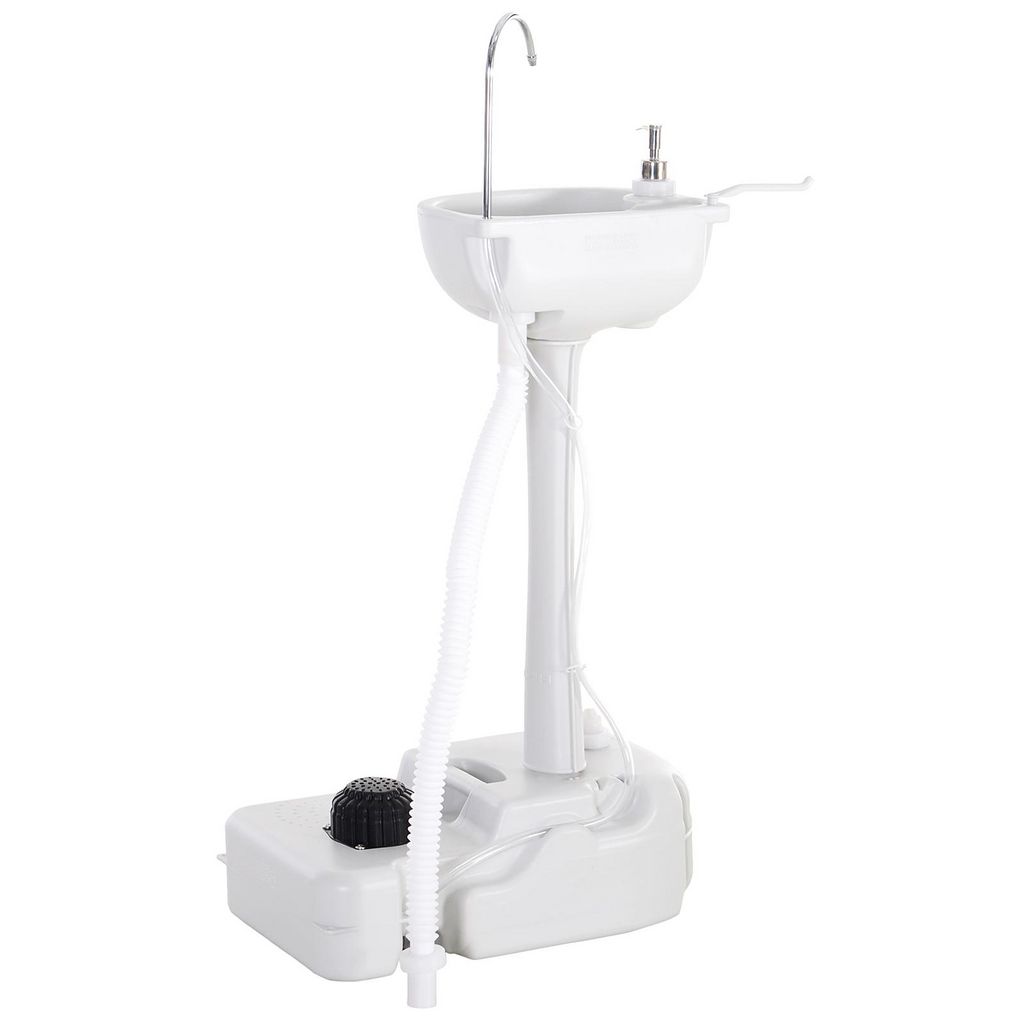 Évier à Main Portable Jardin Extérieur Camping Voyager avec Porte-Serviette Réservoir d'eau 17L Pompe à Pied 51 x 33,5 x 103 cm Gris