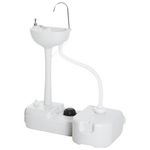 Évier à Main Portable Jardin Extérieur Camping Voyager avec Réservoir d'Eau 17L Pompe à Pied 83 x 50 x 103 cm Gris