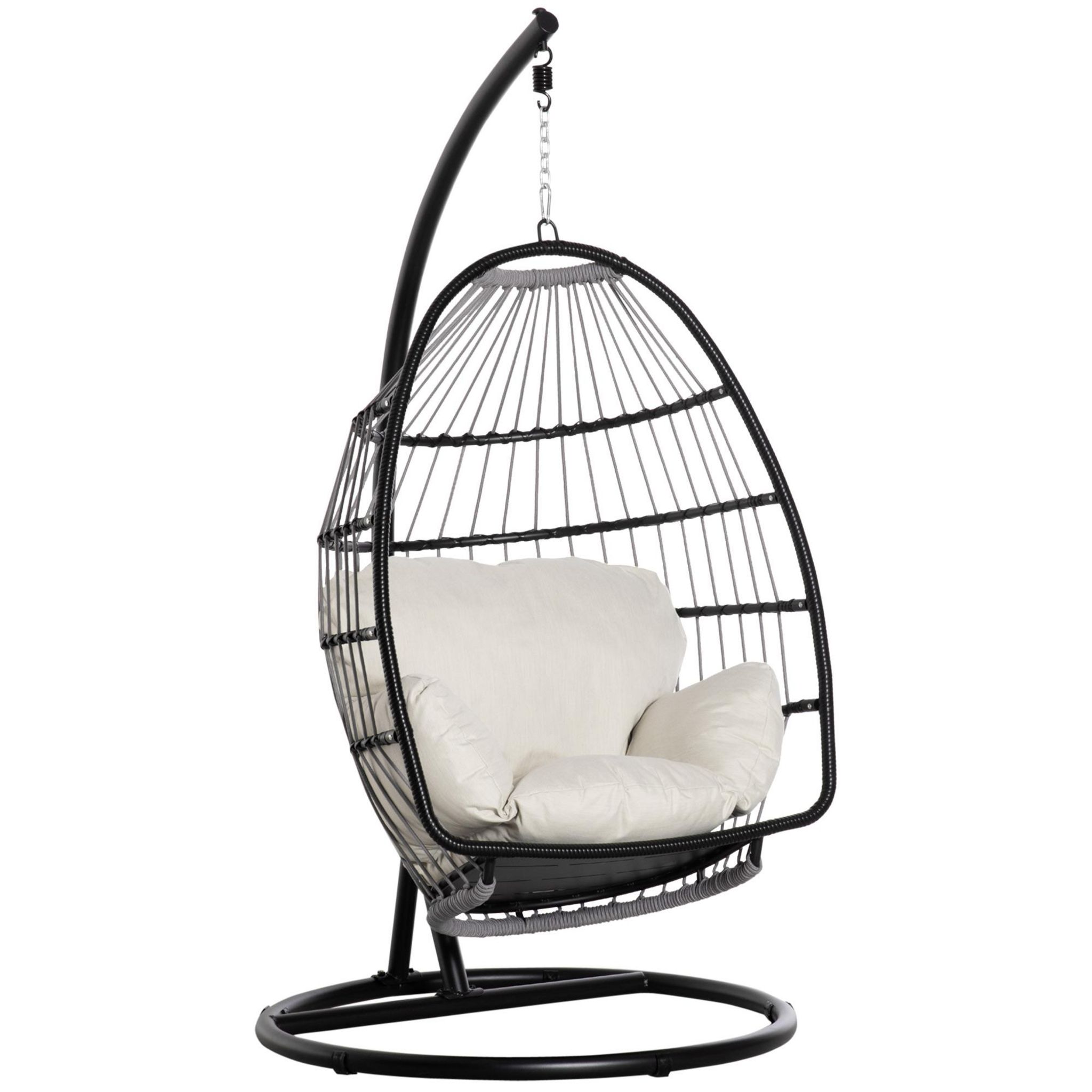 Fauteuil suspendu de jardin - fauteuil oeuf suspendu - balancelle pliante - coussin, support inclus - dim. 101L x 101l x 188H cm - métal époxy PE polyester crème