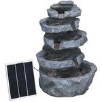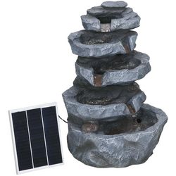 Fontaine de jardin à énergie solaire - fontaine roche cascade 5 niv. LED pompe incluse - résine gris
