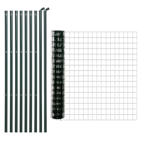 Grillage rouleau soudé - maille 7,3L x 6,3l cm - hauteur 2 m - longueur 10 m - poteaux, jambes de force inclus - acier revêtement PVC vert