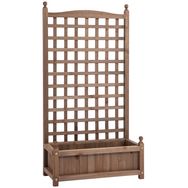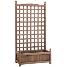 Sublimez votre extérieur avec cette jardinière sur pied et son treillis en bois de teinte marron.