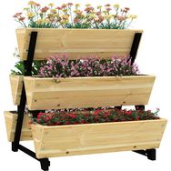 Cette jolie jardinière sur pied triple niveau avec 5 bacs en bois de sapin traité autoclave vous permettra de faire vos plantations de légumes, plantes aromatiques ou fleurs sans avoir à trop vous baisser. Compacte et très élégante, ce bac à jardin s'intègrera parfaitement sur votre balcon, terrasse