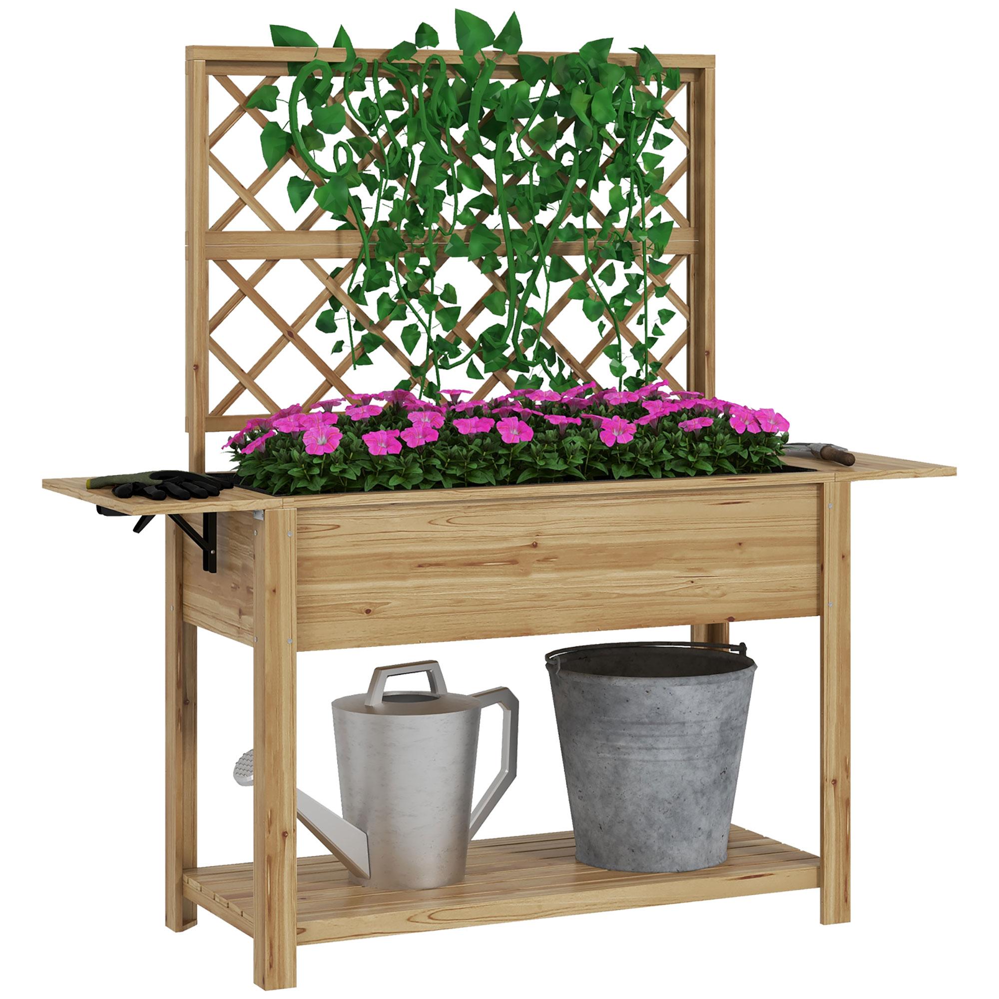 En savoir +Notre jardinière surélevée d'Outsunny avec treillis est idéale pour les terrasses, les balcons ou dans les jardins. Grâce à la plateforme surélevée, vous pouvez jardiner confortablement sans avoir à vous baisser, tout en protégeant vos plantes des insectes indésirables. Cette jolie jardinière extérieure en bois de sapin vous permettra de faire vos plantations de légumes, plantes aromatiques.