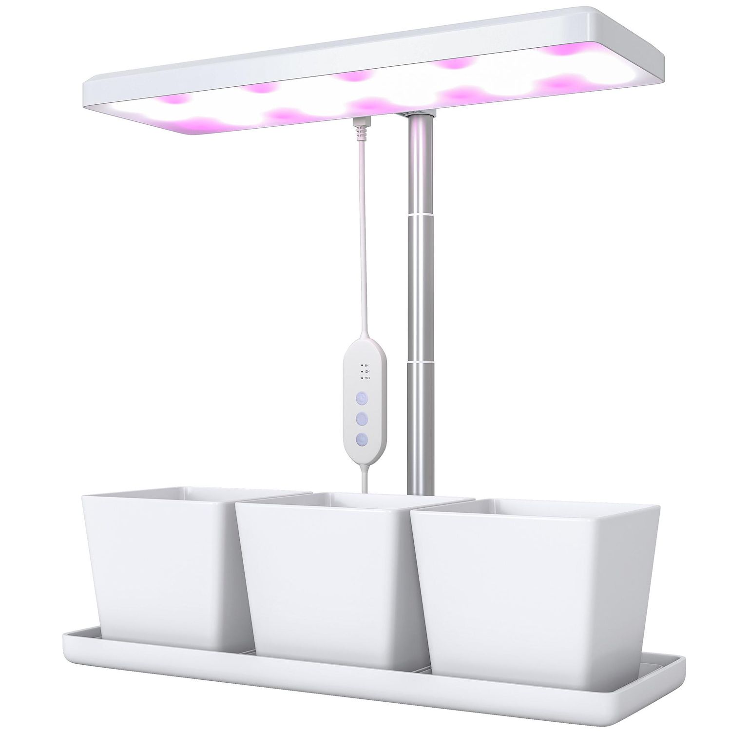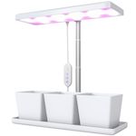 Lampe de croissance LED à spectre complet avec 3 pots - timer, hauteur, luminosité réglable - blanc