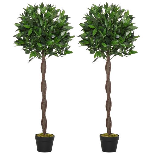 Lauriers artificiels topiaires 1,20H m - lot de 2 lauriers boules artificiels - 741 feuilles réalistes par pied - tronc liane - pot inclus noir vert