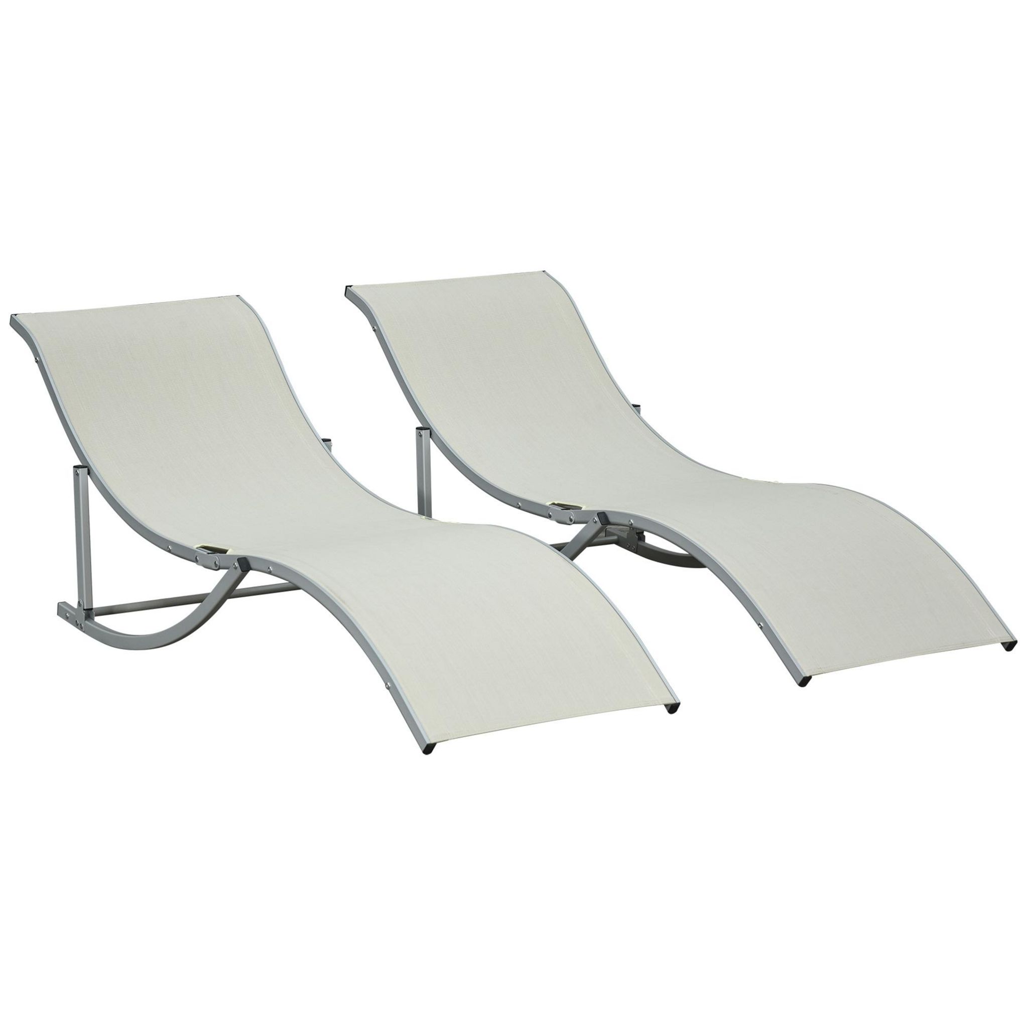 Lot de 2 bains de soleil pliables design contemporain - lot de 2 transats ergonomiques - alu. textilène beige