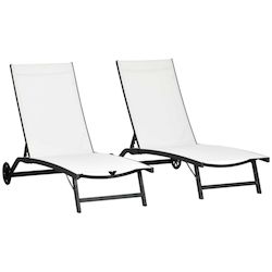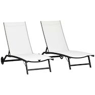 Ce superbe lot de 2 bains de soleil style contemporain sublimera votre extérieur ! Doté d'un revêtement très élégant en textilène micro-perforé à séchage rapide et très confortable (inclinaison réglable 5 positions), vous pourrez profiter pleinement des belles journées en duo !