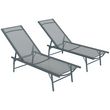 Lot de 2 bains de soleil transats inclinables pliables métal époxy textilène gris