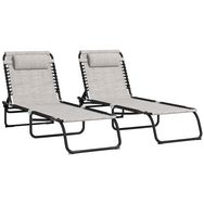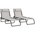 Lot de 2 bains de soleil transats pliables inclinables acier lacets élastiques noir textilène crème
