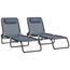 Lot de 2 bains de soleil transats pliables inclinables acier lacets élastiques noir textilène gris