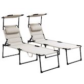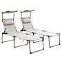Lot de 2 bains de soleil transats pliables réglables avec pare-soleil blanc cassé
