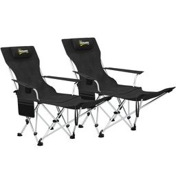 Lot de 2 chaises de camping pliantes - repose-pied amovible, rangements - sac transport - noir