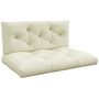 Ce superbe lot de 2 coussins matelas (un coussin d'assise, un coussin de dossier) vous permettra d'être confortablement installé sur votre banc, balancelle ou encore canapé de jardin. Son élégant style Cherterfield capitonné coloris crème apportera une touche de décoration supplémentaire pour profit