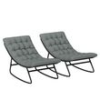 Lot de 2 fauteuils à bascule de jardin avec matelas style Chesterfield acier noir tissu gris