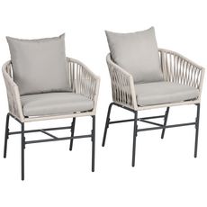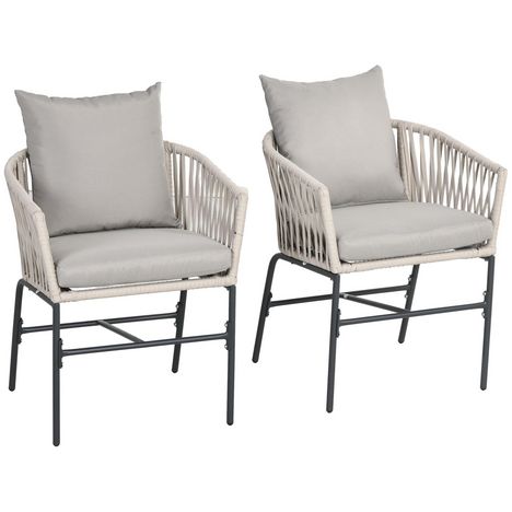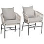 Lot de 2 fauteuils de jardin avec coussins métal cordes PE noir gris